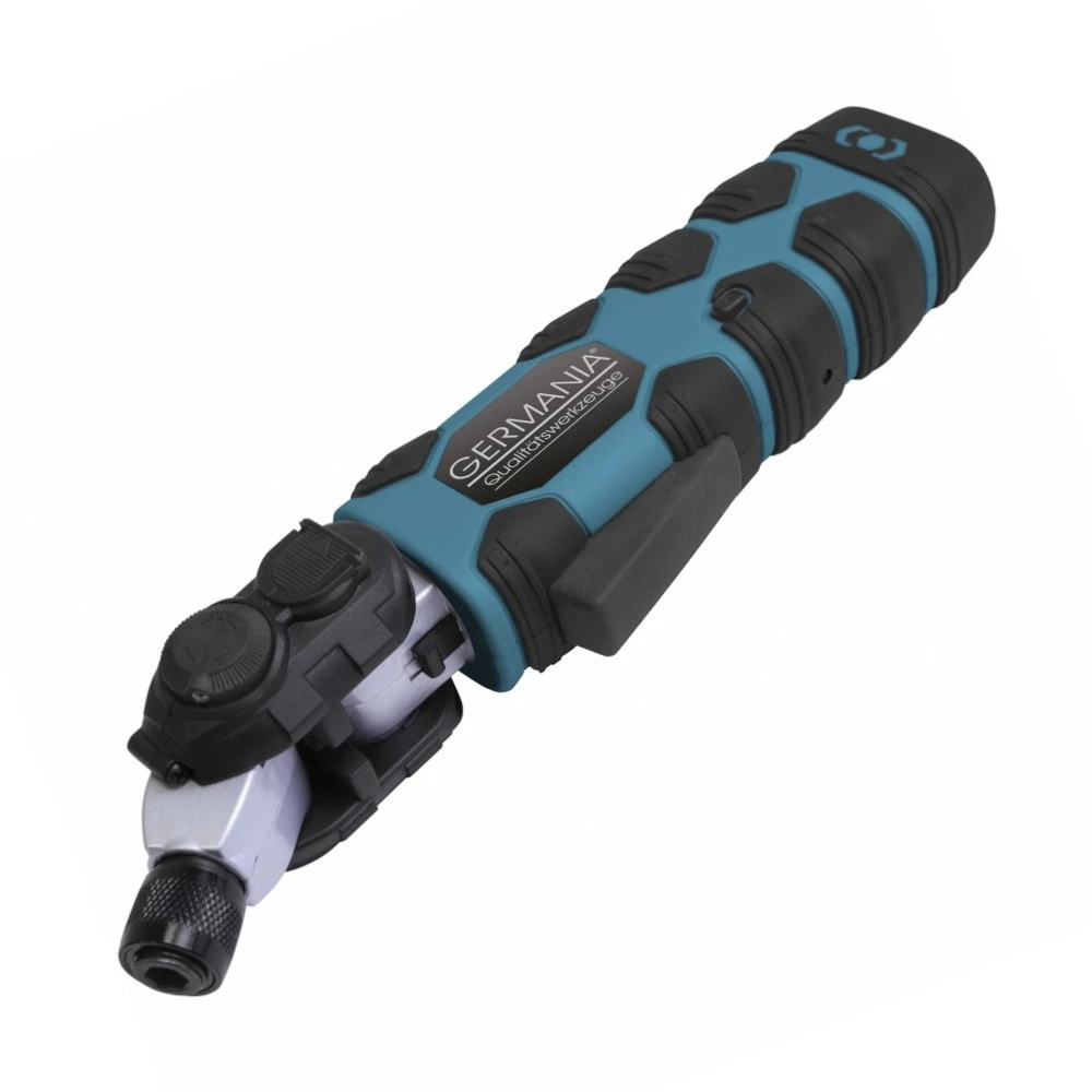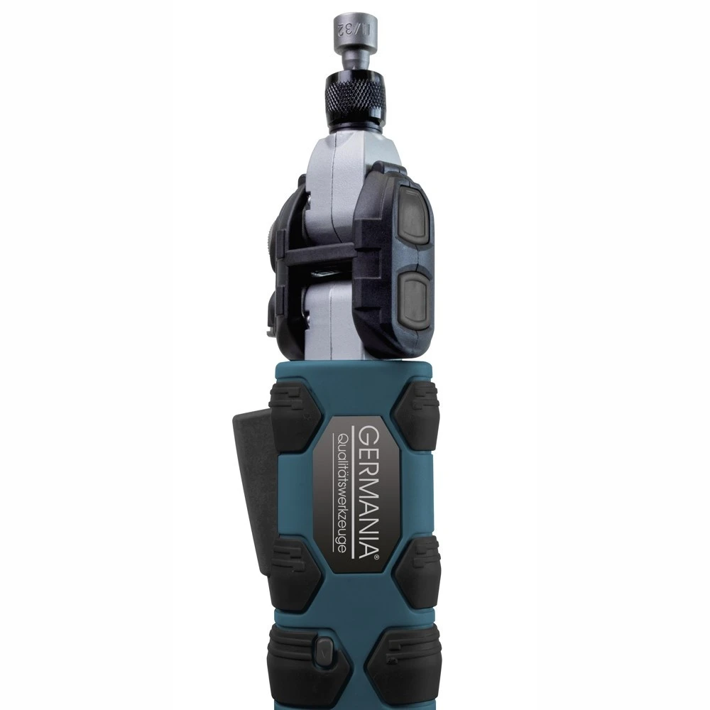 Der GERMANIA Präzisionsschrauber ist ein hochwertiger Akkuschrauber mit einem 7,2 V Li-Ion-Akku, der für nahezu unbegrenzte Einsatzmöglichkeiten sorgt. Er eignet sich perfekt für schwer zugängliche Stellen dank seines um 360° verstellbaren Kopfes, der die Arbeit entsprechend erleichtert. Der Akku des GERMANIA Präzisionsschraubers hat eine Kapazität von 700mAh Li-Ion und eine Ladezeit von ca. 1 Stunde. Die Leerlaufdrehzahl beträgt ca. 0-175 U/min und das maximale Drehmoment liegt bei ca. 5 Nm. Der Bithalter hat eine Größe von ca. 6,35 mm. Die integrierte LED-Arbeitsleuchte ist besonders praktisch, um dunkle Ecken und Winkel auszuleuchten und so noch präziser arbeiten zu können.