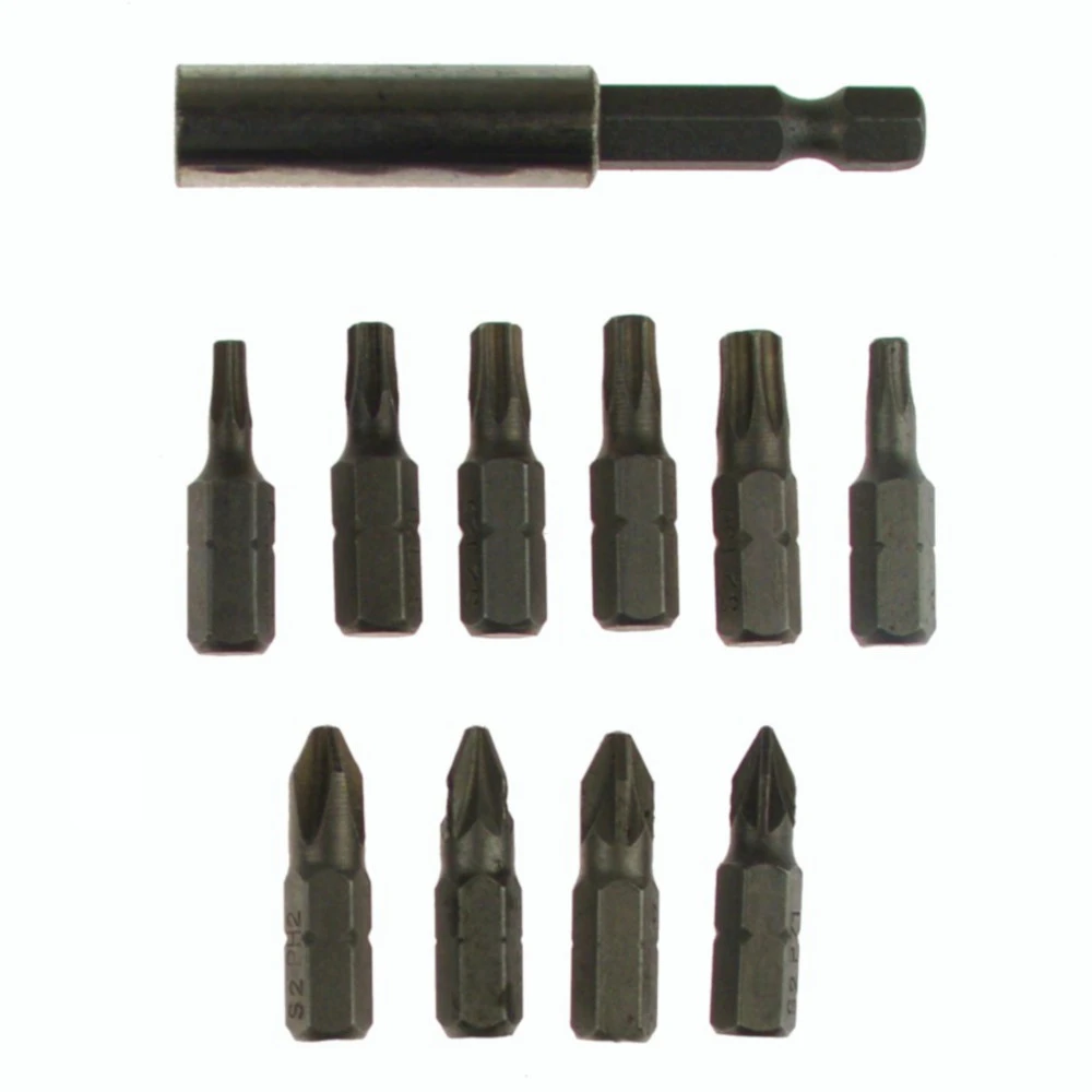 Wer kennt es nicht, wie schnell ist so ein kleiner Bitaufsatz verschwunden oder verlegt worden. Meist benötigt man aber genau den fehlenden Bit. Dieser 10-teilige Bitsatz enthält alle gängigen Bit und auch ein Schnellwechsel – Bithalter ist dabei. Ideal für den Heimwerker und Profi.