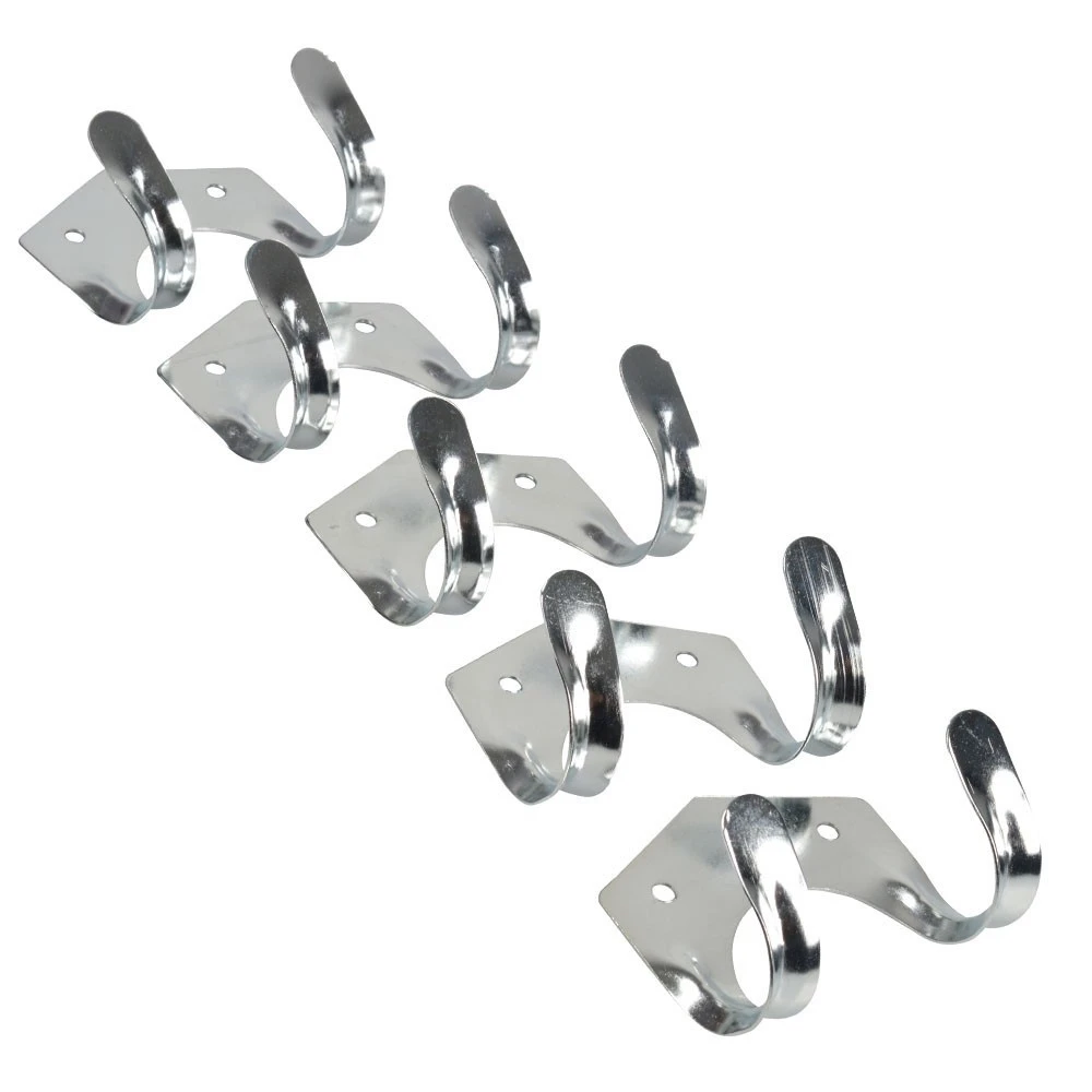 5 GERMANIA Gerätehaken in schwerer Ausführung im Set. Die Gerätehaken sind aus verzinktem Stahl gefertigt. Der Abstand der Bohrungen beträgt 50 mm (Mitte-Mitte).