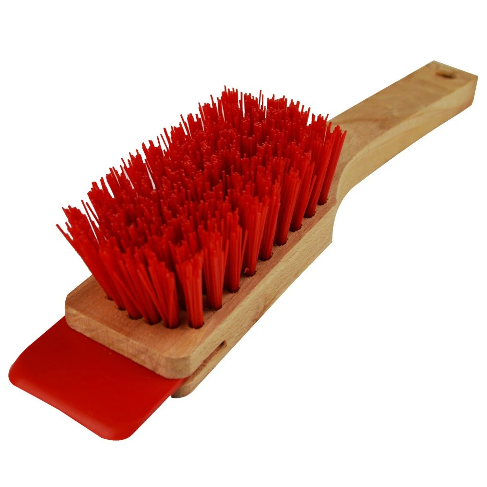 GERMANIA Rasenmäherbürste aus Holz mit Kunststoffschaber in rot