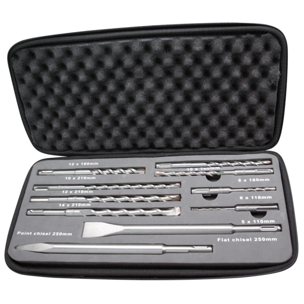 Das 10-teilige SDS-Bohrer-Set von GERMANIA ist ideal für sämtliche Beton- und Steinarbeiten. Das Set besteht aus 8 SDS-Steinbohrern, einem Spitzmeißel und einem Flachmeißel und sollte es daher in keiner Handwerker- und Heimwerkerwerkstatt fehlen. Der Steinbohrer eignet sich zum Bohren in Mauerwerk, Beton, Dachziegeln, Klinker und allen ähnlichen Materialien. Bei Nichtgebrauch kannst du das Werkzeug in der mitgelieferten Aufbewahrungstasche verstaut werden.